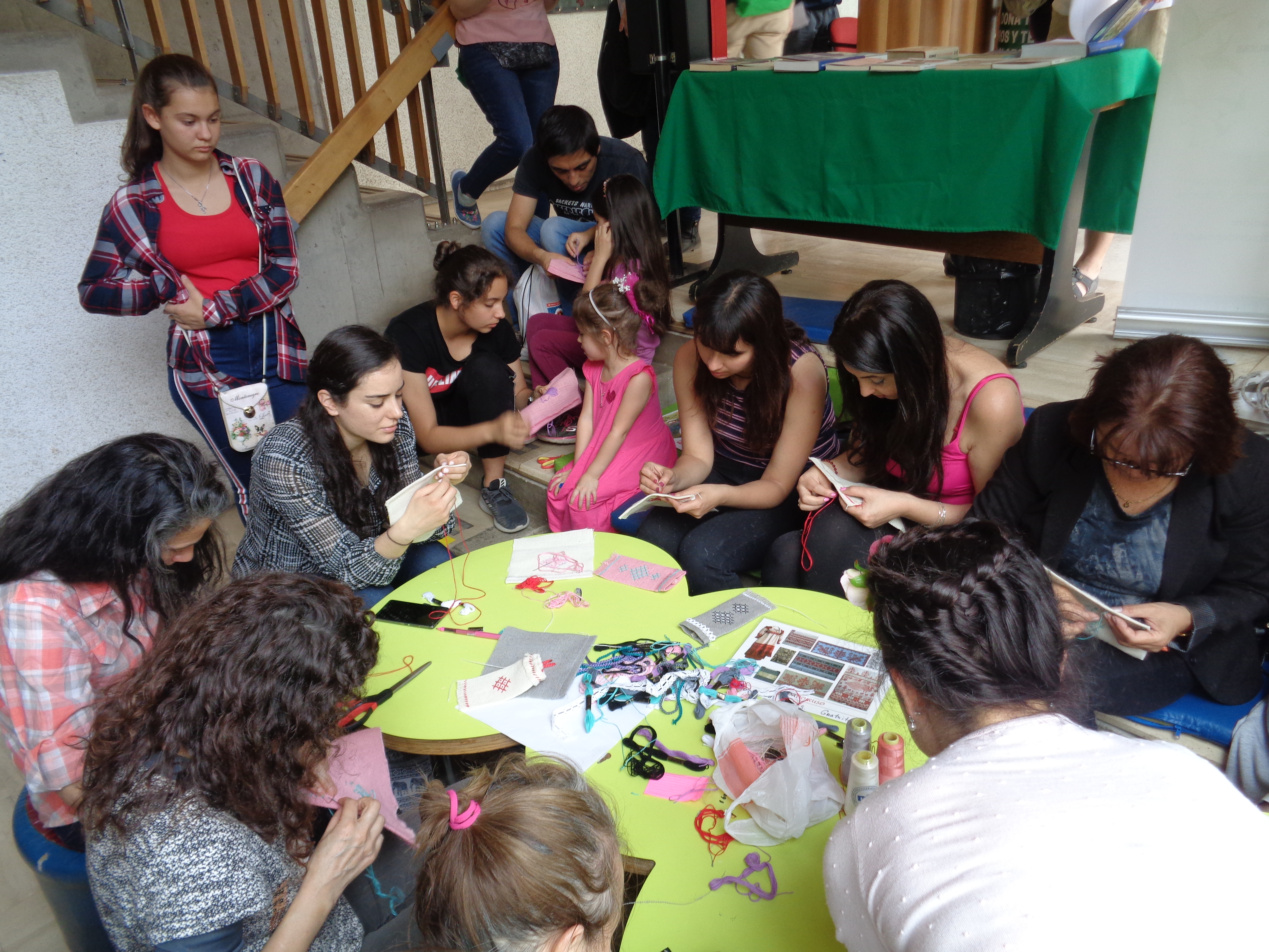 Por primera vez en el programa del Centro de Cultura Ruso, se organizó una lección sobre bordado como parte del festival. Se le solicitó a matushka Ellina Mikhailovich, quien además es la directora del coro de la parroquia San Nicolás de Serbia, que estuviera a cargo de esta lección. Especialmente para el festival, se preparó muestras de bolsas de lino, dispuestas en la técnica del bordado tradicional ruso, lo más simple posible incluso para los principiantes. Las mujeres se acomodaron alrededor de la mesa en un pequeño departamento de la biblioteca del Café Literario del Parque Balmaceda. Entre los que se reunieron había muchos que era la primera que tomaban una aguja en sus manos. Ellina Mikhailovich y su asistente Serafim Chirkova trabajaron con las costureras durante más de dos horas, ayudándolas en cada paso para lograr los mejores resultados. El trabajo se desarrolló en un ambiente muy agradable y relajado. En el proceso de bordado, las mujeres hablaron juntas, tratando de aprender palabras y frases en ruso. Todos quedaron muy satisfechos con los resultados, y al final de la lección, las palabras rusas “gracias” y “muy hermoso” sonaban cada vez más a menudo.