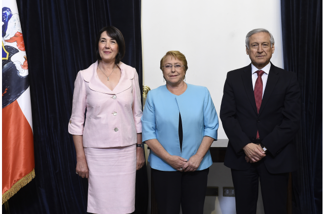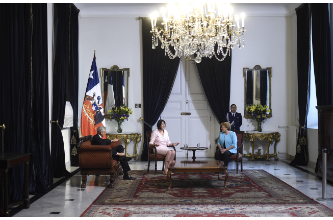 Antes de coktel la Embajadora presentó sus Cartas credentiales a la Presidenta de Chile, Michelle Bachelet.
