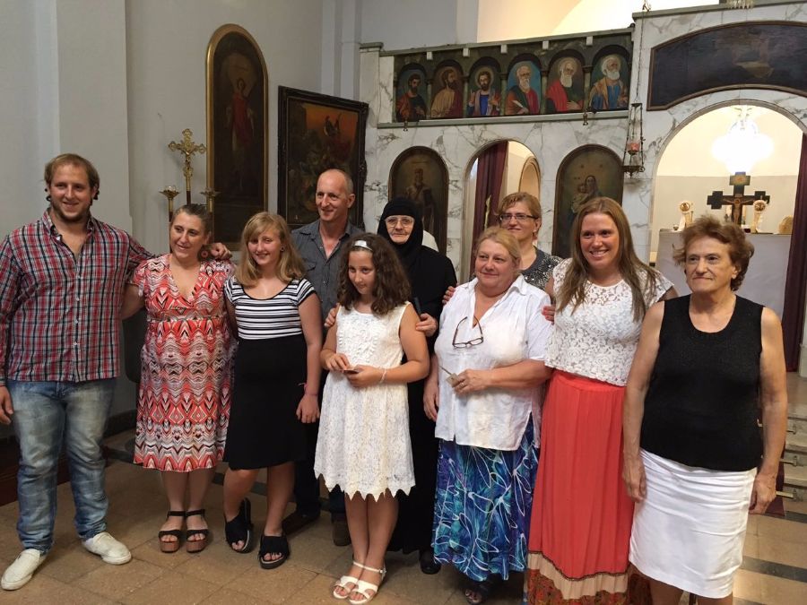 Током свете службе Божије владика Кирило је примио, кроз Свету Тајну Миропомазања, у Православну Цркву све чланове породице Поповић, чији је најстарији члан, отац породице, господин Густаво Николас, предсједник друштва “Његош” из Црне Горе. У Православну Цркву примљени су и његова супруга Ариадна и њихова дјеца: Николас, Ана – Бриса и Мартина, као и госпођа Софија – Дегли Врбица. Шест нових чланова Православне Цркве су потомци Црногораца, и кроз Тајну Миропомазања су се вратили вјери својих предака. Куме су биле сестре Марита и Карина Јововић, кћерке покојног Благоја Јововића, који је поријеклом из Бјелопавлића.
