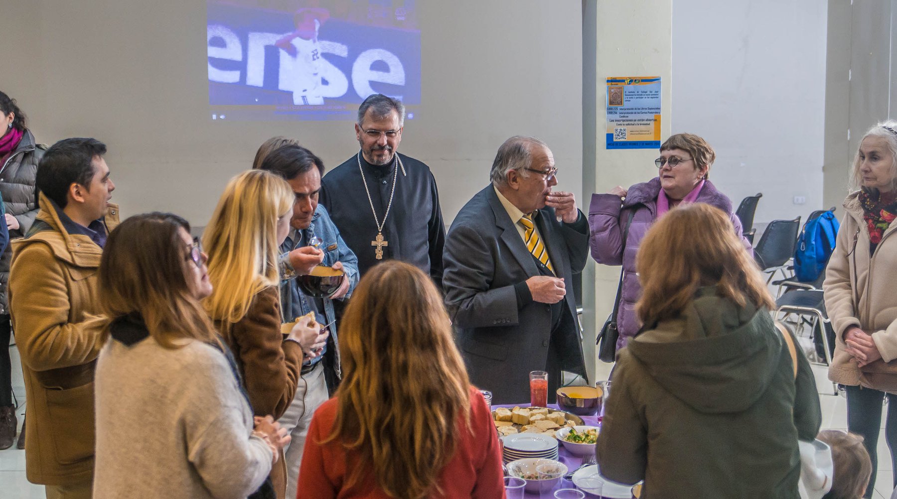 Después del final de la liturgia en el salón parroquial de la Iglesia de la Natividad de la Santísima Virgen María, se presentó a los fieles la película animada sobre la vida de San Pedro y Fevronia. Durante el espectáculo, Ekaterina Gutkina, encargada del área artística del Centro de Ciencia y Cultura Ruso en Chile, tradujo e interpretó los puntos clave de la película en español.