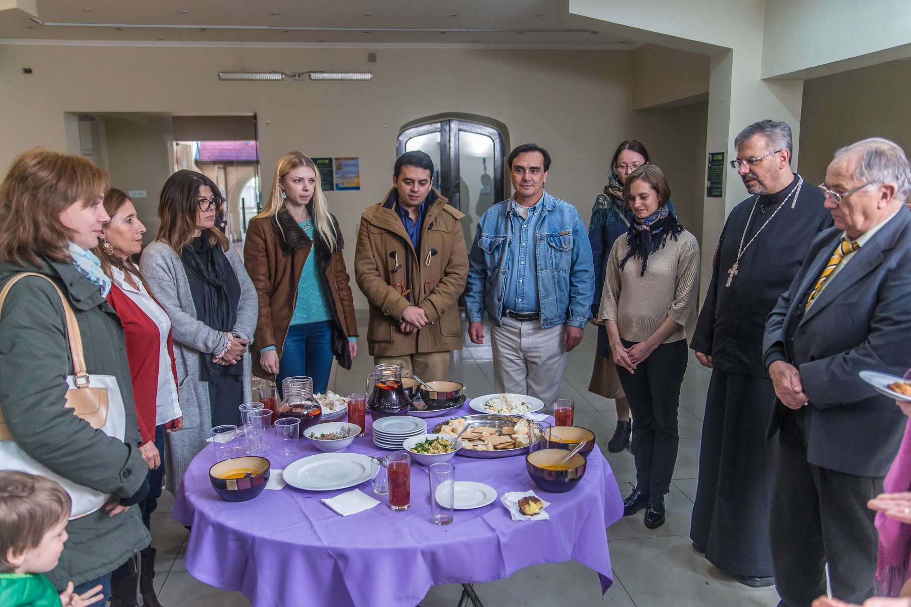 Por la mañana, a las diez en punto, el párroco de la comunidad, el reverendo padre Dusan Mihajlovic, en presencia de más de treinta fieles de varias nacionalidades celebró la Divina Liturgia en la iglesia de la Natividad de la Virgen María (Patriarcado de Antioquía). En su primer sermón después de las lecturas de la Epístola y el Evangelio, padre Dusan, contó los detalles acerca de la historia del nacimiento de San Juan, el Bautista (“un ángel en la carne” y “mayor hombre que nace de mujer”), y observó el sentido profundo de su predicación acerca del arrepentimiento como un prerrequisito para la vida de la gracia en Cristo.