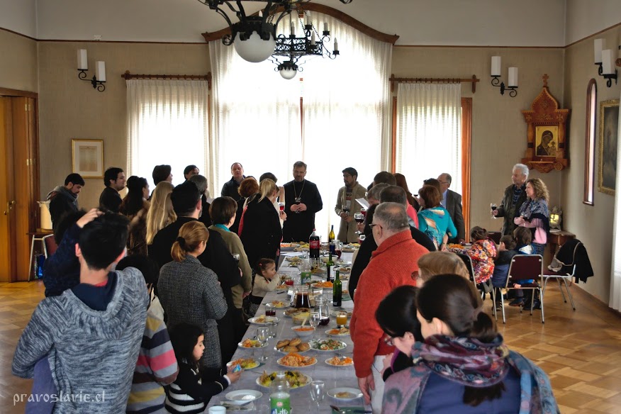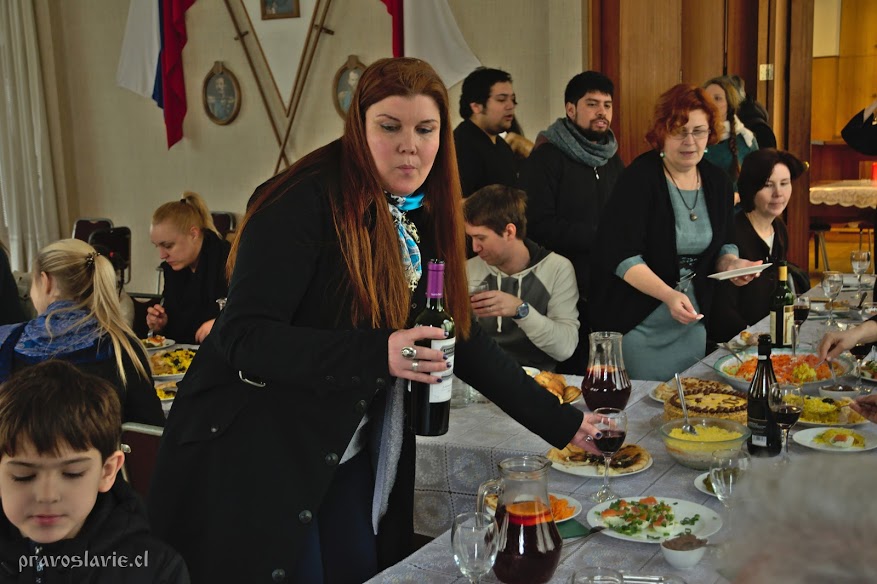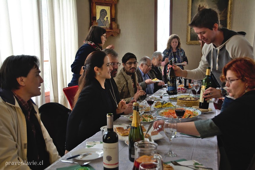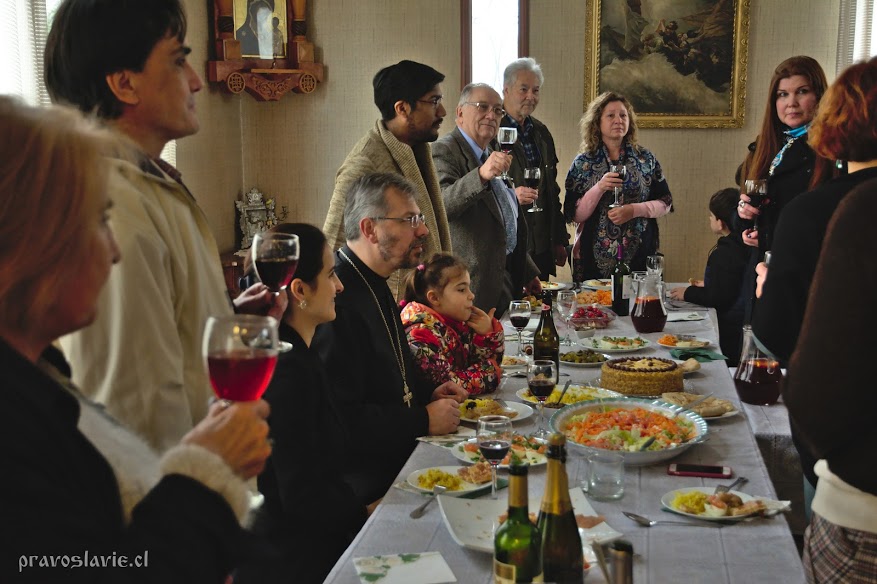 Los invitados no querían terminar la fiesta. Los brindis, felicitaciones y canciones seguían horas tras horas. Al final de la fiesta el padre apagó las velas en su torta de cumpleaños, preparada por su esposa Ellina. Ése día se ha convertido en toda una fiesta de la amistad y hermandad entre los pueblos presentes en la iglesia: Serbios, rusos, ucranianos, bielorrusos, chilenos, bolivianos, georgianos, armenios, azerbaiyanos; todos reunidos por su Fe a Dios y por el amor hacia nuestro sacerdote.