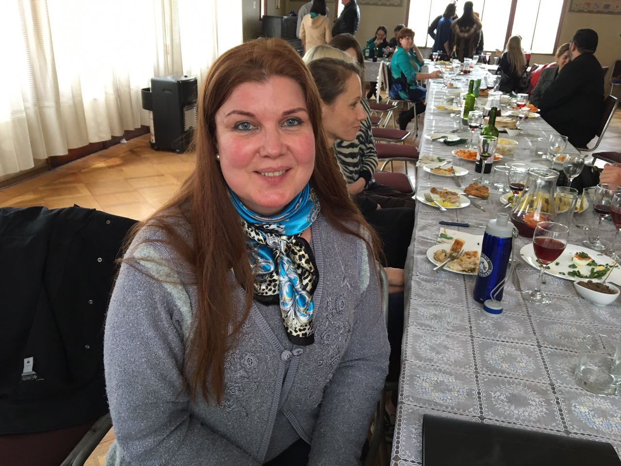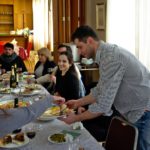 Después, todos fueron invitados a un banquete organizando en dependencias de la Casa Rusa. Las mesas estaban llenas de muchos manjares. Las personas los prepararon de todo de corazón. Marina Zolotujina preparó un plato chileno tradicional llamado “Charquicán”, Elena Panajova invitó a saborear de un “Plov” de Azerbaiján, Alexandra Legkaya coció un “Koj” serbio, Nadejda Lukianova, Andrey Duben y Emilia Kovalkova prepararon bocadillos de cóctel de pescado típicamente rusos y Anastasia Malyshkina se hizo presente con un “Tiramisú” delicioso. No es posible nombrar todos los manjares con los cuales se adornaron las mesas.