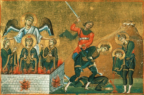 En su libro (con su nombre) el profeta Daniel narra sobre la hazaña de sus tres amigos, quienes se negaron a adorar al ídolo de oro (Marduk) y fueron tirados al horno caliente por orden de Nabucodonosor. Pero el ángel divino les ayudo y quedaron intactos.