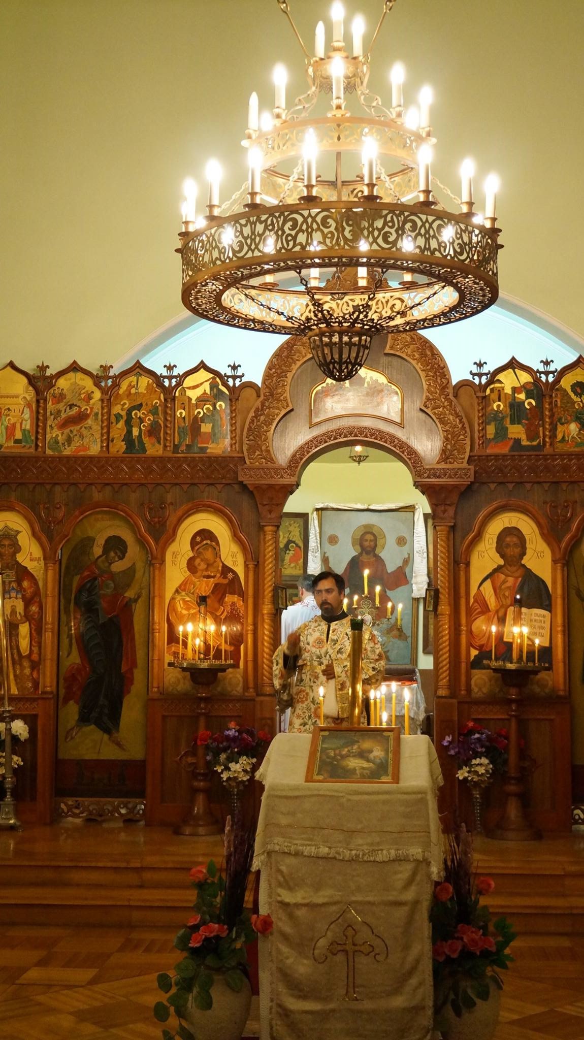 После литургии семья наших верных прихожан, Сергей и Анастасия Канашины и их дети, которые покинули Чили в этот день, торжественно вручили отцу Душану в дар приходу Федоровскую икону Богородицы и новую плащаницу.