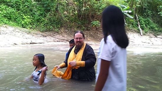 „Крштење 19 Филипинаца је обављено на планинској реци поред Аракана после дуже верске наставе,“ пише отац Георгије. Сви просветљени су из оближњег села Макалангот у провинцији Котабато, где се налази православна заједница од 2015. године. Претходно су били чланови филипинске независне „Аглипајан“ Католичке Цркве.