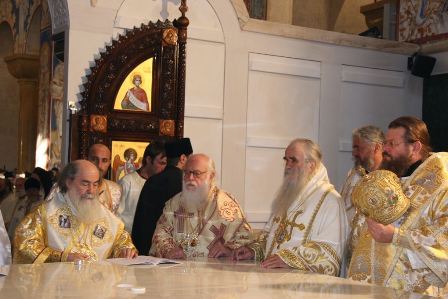 Митрополит Амфилохије је на крају заблагодарио свима који су помогли подизање храма и вернима казао да су у свети престо уграђене честице моштију Светог Саве Освећеног, коју је донео патријарх Теофило, Јасеновачких мученика коју је благословио недавно у Јасеновцу Патријарх васељенски Вартоломеј, и Светог Јована Влаимира.