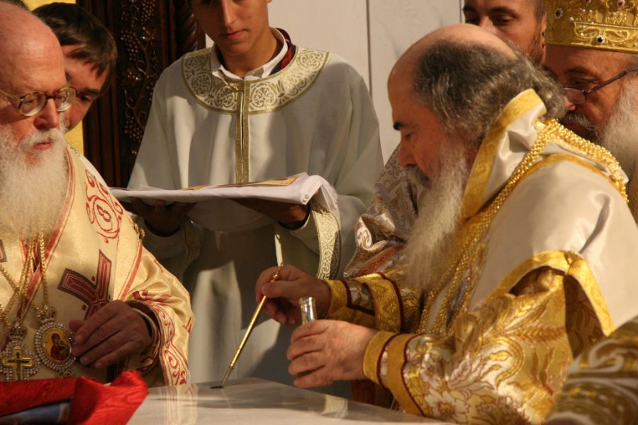 Његово Блаженство Патријарх Јерусалима и све Палестине г. Теофило III освештао је 25. септембра 2016. године, уз саслужење Његове Светости Патријарха српског г. Иринеја, Његовог Блаженства Архиепископа Тиране и све Албаније г. Анастасија, Његовог Блаженства Архиепископа охридског и Митрополита скопског г. Јована и представника свих помјесних Православних Цркава, Саборни храм Светог Јована Владимира у Бару. На платоу испред храма налазило се више хиљада православних верника који су молитвено присуствовали светој архијерејској Литургији.
